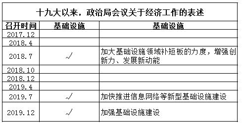 虽然着墨不多,但2019年12月召开的政治局会议明确提到了明年要“加强基础设施建设”。丁爽也认为,预计基础设施投资将在财政刺激乏力、工业库存周期触底、汽车销售不太受拖累等背景下小幅上升。
